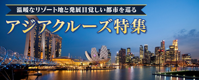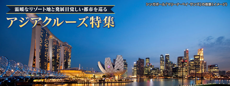 アジアクルーズ旅行・ツアーならクラブツーリズムにお任せ!シンガポールのマリーナ・ベイ・サンズ、マレーシア、香港、タイ、ベトナム、ホイアン、上海など、アジア屈指のリゾート地をクルーズで効率的に巡りませんか。日程も短く参加しやすいので初めて船旅をされる方にも、クルーズ経験者の方にもおすすめです。