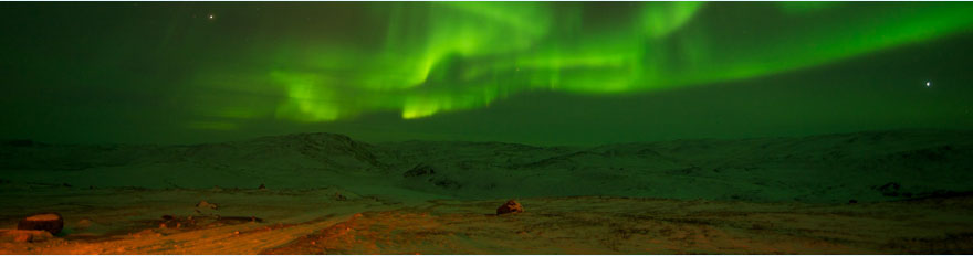オーロラが発生する地域であるオーロラベルトに年中属し、人工光が少ないことが特徴です。ツアーの宿泊地、カンガルルススアークは、ホテル周辺は大自然が広がるのみ。神秘の光を邪魔する要素はありません!