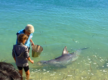 世界遺産シャークベイにあるモンキーマイアは、野生のイルカと出会える人気のスポットです。西オーストラリア州政府環境省のレンジャーによって環境保護の視点から大切に保護されています。朝7:00ごろから1日に2.3回は遊びにやって来て、1~2時間はビーチで遊んでいくので、写真もたくさん撮れます。
