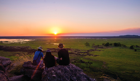 地平線まで続く広大な湿地を見渡すことができるウビアロック頂上。岩の周囲にはアボリジナルアートも数多く残っている名所の一つ。