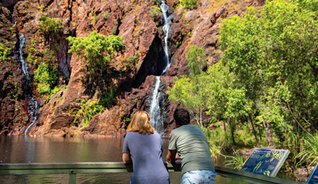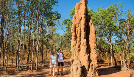 ダーウィンから車で約2時間、個性豊かな美しい滝や野生動物に出会える、自然の魅力が凝縮された公園。林立するアリ塚は高さ5mにもなるものも!