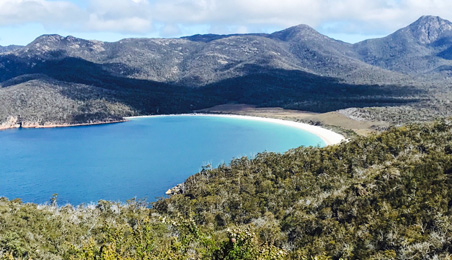 タスマニアの大自然を堪能するために外せないのが世界遺産のクレイドルマウンテンです。周辺の国立公園が全て世界遺産に登録されており、タスマニア固有の珍しい植物やウォンバットやワラビーなどの野生動物が頻繁に見られる、豊かな自然が魅力。公園内に宿泊し、大自然に囲まれたホテルライフやダブ湖周辺のハイキングなど、思い思いの滞在を過ごすのがおすすめです。また、絶景スポットとして是非訪れていただきたいのがワイングラスベイです。フレシネ国立公園の中にあり、ワイングラスを思わせる美しい曲線が特徴。2時間のハイキングルートの他、遊覧飛行で上空からご覧いただくことも可能です。
