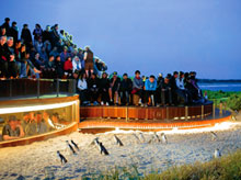 メルボルンから車で約1時間半の場所に位置する、世界最小・体長わずか30cmほどのリトルペンギンたち生息する島。日没とともに海から陸上の巣へ戻ってくる様子を間近で見学できます。かわいらしいペンギンたちが列をなしてビーチへ行進する様子はまさに「ペンギンパレード」!