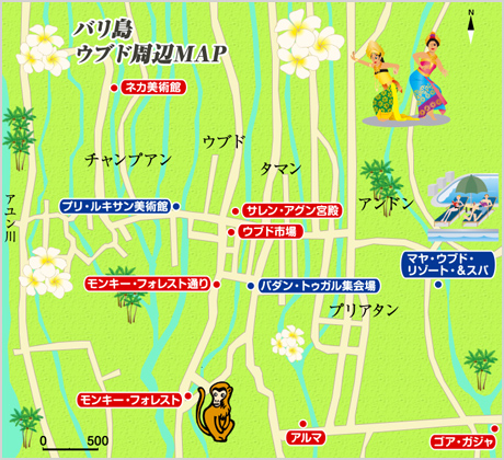 ウブドとは本来ひとつの村のことですが、ここでは隣接するプリアタン村などの周囲を含めたエリアを称して「ウブド」と呼んでいます。ウブドは芸能の中心地として、バリ文化の多様性を見ることができる観光では外せない場所の一つです。観光化が進み、おしゃれなカフェやショップが立ち並んでいる今でも、やはりこの村が文化と伝統の村であることは間違いありません。また、目抜き通りから一歩裏側に踏み込めば、のどかなバリの人々の昔ながらの暮らしを垣間見ることができるのも魅力です。