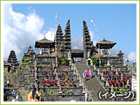 デンパサール北西のメングウィにある、バリで最も美しいといわれるヒンズー教寺院です。境内は堀に囲まれ、メルといわれる複数層の塔などが多く建てられています。