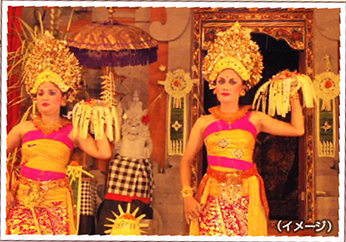 バリの女性舞踊を代表するダンスで、きらびやかな衣装や優雅な舞が特徴です。宗教儀式舞踊の要素を取り入れ19世紀に誕生しました。古典文学の恋物語がポピュラーです。