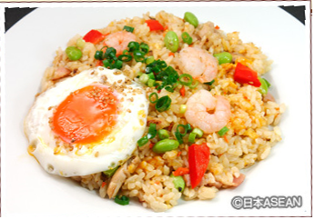 定番中の定番ともいえるインドネシア風チャーハン。ごはんを鶏肉やタマネギと一緒にヤシ油で炒めたもので、目玉焼きや揚げせんべいを添えるのが一般的。スパイシーさが魅力。