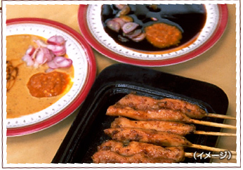 インドネシア版の焼き鳥。甘いピーナッツソースと辛いサンバルをお好みで使います。バリでは神様へのお供え物として儀式やお祭りの際に供される料理です。