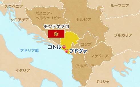モンテネグロは2006年6月にセルビア・モンテネグロから分離独立した比較的新しい国です。南東ヨーロッパはバルカン半島のアドリア海沿いに位置し、北はセルビア、北西はクロアチアと国境を接しています。とても小さな国で、日本の福島県と同じぐらいの大きさですが、国立公園が4ヶ所もあり、観光資源が豊富で人気が出てきている国です!