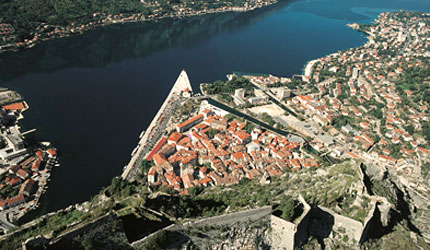 複雑な海岸線と険しい山にかこまれた天然の要塞の地、世界遺産のコトル。背後の山に沿って城壁が築かれ堅固な城砦港湾都市として栄えました。旧市街には聖トリプン大聖堂など古い町並みが今も残っています。