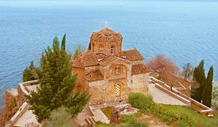 サミュエル要塞 ブルガリア帝国の皇帝でオフリドを首都に定めたサミュエルによって建てられたものです。写真の聖ヨハネ・カネヨ教会はヨハネカネヨ岬の先端に立っており、小さくてかわいらしいオフリドのシンボルともいえる教会ですが、内部の保存状態は良くなく、外見のみの見学です。自然と歴史を楽しめるとっても魅力のある都市オフリドは、クロアチアの人気観光地・ドゥブロヴニクと比べられるようなとても美しい街です。