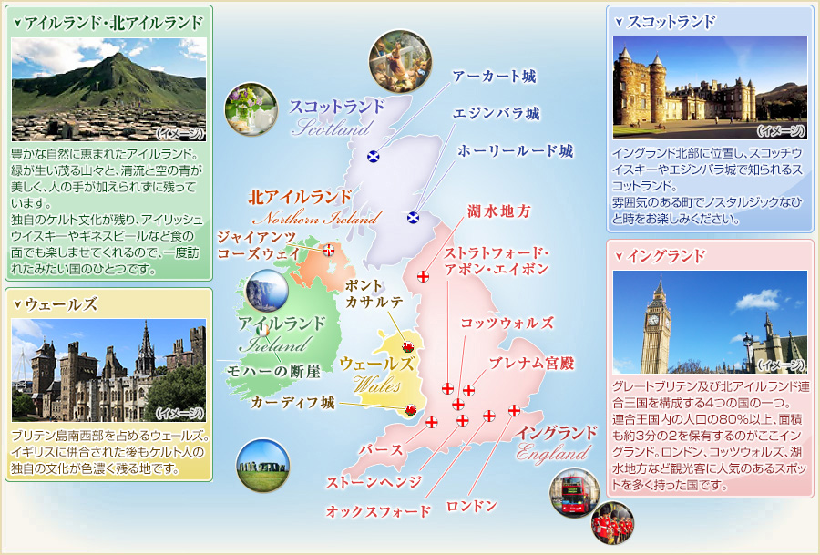イギリス旅行・ツアー・観光なら、クラブツーリズムにおまかせ!添乗員付きのツアーだから安心で快適です。イングランド、スコットランド、ウェールズ、北アイルランドなどの観光地や、英国のおすすめのツアーをご紹介。ツアーの検索・ご予約も簡単。