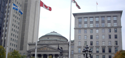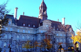 ジャックカルティエ広場の向かいに建つバロック調のモントリオール市庁舎。1878年に建設されましたが1922年に火災で大部分が焼失してしまい、現在の建物は1926年に修復されたものです。市庁舎の両脇には現裁判所と2つの旧裁判所があります。