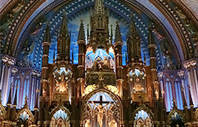 モントリオール市内観光で欠かせないのがこのノートルダム大聖堂です。モントリオール出身の歌手セリーヌ・ディオンが結婚式を挙げた場所としても有名。1829年建設のネオゴシック様式の重厚な建物で、内部の祭壇の美しさは息を飲むほどです。7,000本のパイプを持つ世界最大のパイプオルガンもあります。