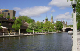 カナダの首都オタワは、カナダの英語圏とフランス語圏の境に位置しており、オタワ川の対岸にはケベック州の街・ガティノーを目にすることができます。そのオタワ川を見下ろす丘・パーラメントヒルには国会議事堂が建ち、その周辺には国の重要機関が集まっている、まさにカナダの政治の中心地です。世界遺産のリドー運河も見所です。