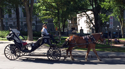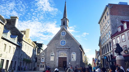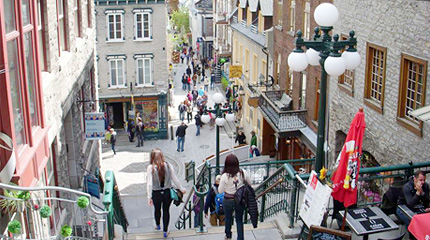 ケベック州の州都であるケベックは同じフランス語圏のモントリオールと比較し、更にフランス色の強い街です。街の見所である、城壁で囲まれた旧市街は北米発の世界遺産都市としてユネスコに登録されています。バイオリンを奏でる人、絵描き、大道芸人など、街の中心はケベックの住人や観光客で常に賑わいを見せています。