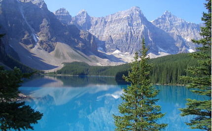 カナダを代表する風景とも言えるモレーン湖は、旧カナダ20ドル紙幣の図案にもなったことがあるカナダ有数の景勝地です。湖の周囲にはテン・ピークスと呼ばれる10の山々がそびえ、雪山とターコイズブルーの湖のコントラストが非常に美しいです。湖の入り口にある小さな山から見下ろすようにご覧いただきます。