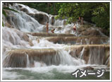 オーチョリスはジャマイカ島のリゾートで、スペイン語で「4本の川」という意味です。島の中央部にそびえるブルーマウンテン山(標高2,256メートル)からはいくつもの川が海に注いでいます。そのうちの1つ、ダンズ・リバー・フォールが特に有名で、緩やかな滝登りを楽しむことができます。