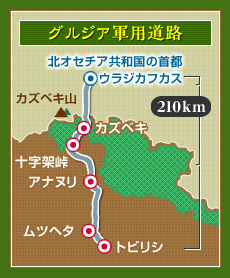 トビリシからロシア連邦の北オセチアまで続く南北全長210キロメートルの軍用道路