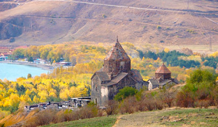 琵琶湖の2倍ほどの大きさをもつアルメニア最大の湖で、海抜約1,900メートルに位置し、大規模な湖としては世界で最も高地にある湖の一つとされています。コーカサスの真珠と称され、そこに建つセヴァン修道院とともに美しい風景を作り上げています。