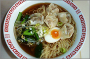 熱いスープにワンタンが乗せられた、広東の名物麺料理です。