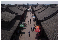 山西省の省都太原市の南約100キロに離れています。平遥古城の城壁と街並みは、明代初期に造られた当時の姿がそのまま残っており、中国でも最も完全に保存されている古城の一つとなっています。城壁は明代1370年に築かれ、全長約6.4キロ、現在は6つの城門、4つの角楼、72の敵楼が残り、南門の城壁は2005年に再建されましたが、その他の部分は明代のままです。城内に明清時代の民家が4,000軒近く現存して、そのほとんどに今も人が住んでいます。ほぼ中央にある3層建ての市楼に登ると、城内を一望できます。また、城壁の外にある仏教寺院の鎮国寺と双林寺、平遥文廟(孔子廟)、慈相寺も世界遺産に含まれます。