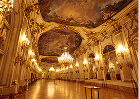 1996年に世界遺産に登録。シェーンブルンは「美しい泉」という意味で、マリア・テレジアに愛された栄光ある時代の名残を今も残しています。1441もの部屋がありますが、通常のツアーではハイライト20部屋をご案内いたします。ひと部屋ひと部屋が全く違う装飾をされているのが魅力です。