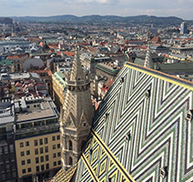 旧市街のちょうど中央付近に佇む、まさにウィーンのシンボル。モザイク模様の独特な屋根が特徴的で、かつて音楽家モーツァルトの結婚式も行われた由緒ある寺院です。また塔へも登ることができ、ウィーン旧市街を見渡せるスポットにもなります。