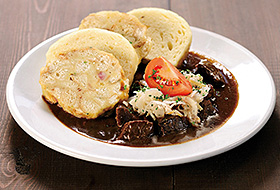 ハンガリーが発祥の、パプリカソースで牛肉を煮込んだ料理。チェコでは、「茹でパン」といわれるクネドリーキが一緒に出てくるのが定番。