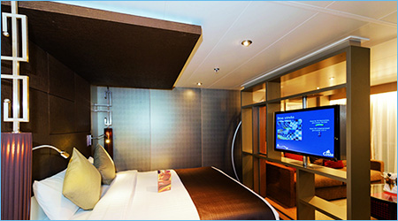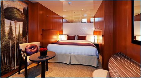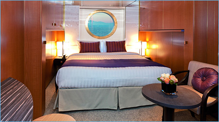 コスタ ネオロマンチカの客室は他のコスタクルーズの客室と比べて広く、ゆったりと過ごしていただけます。キャビンタイプは「内側」「海側」「バルコニー」「スイート」の4種類。
