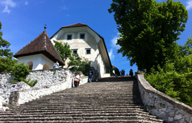 湖面から約100メートルの断崖絶壁の上に建つブレッド城は、ロマネスク様式の壁とゴシック様式の棟で囲まれた1階部分と、邸宅や礼拝堂が建ち、現在では博物館やレストランになっている2階部分とに分かれています。城のテラスからはブレッド湖のすばらしい景色を一望できます。