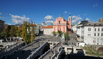 国土のほぼ中央に位置するスロベニアの首都リュブリアーナ。人口約27万の都市であり、政治・文化の中心地となっております。「歴史と芸術の宝庫」リュブリアーナは、ルネッサンス、バロック、アールヌーボーなど様々な建築様式の建物が旧市街に林立しています。