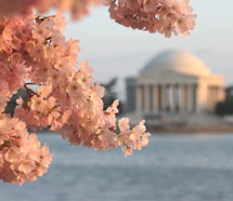 アメリカを代表する桜の名所がワシントンD.C.です。日本から植樹された桜で街がピンク色に染まります。ポトマック川沿いの桜並木は絶景のポイントです。
