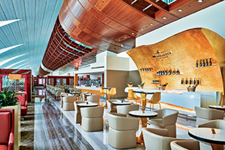 成田空港でのエミレーツ航空ラウンジやドバイ国際空港でのエミレーツ航空ラウンジにて快適な滞在をお楽しみください。アルコールの提供、お食事など上質なサービスをお楽しみいただけます。