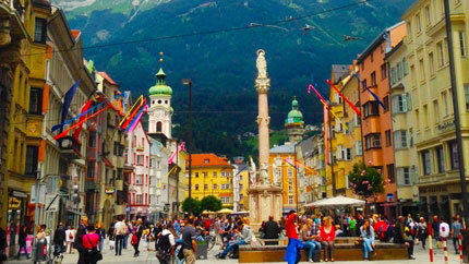 インスブルックはチロルの州都でドイツ・イタリア間の貿易都市として栄えました。間近にアルプスに囲まれており、夏はハイキングの拠点として理想的な街です。