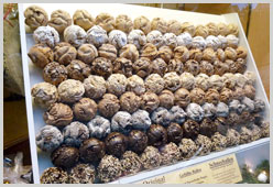 ローテンブルクの銘菓、シュネーバル。「雪の玉」という意味の通り、パイ生地をボール状にまるめたものの上に粉砂糖がかかった伝統的なお菓子です。サクサクとした軽い食感で、チョコレートがコーティングされたものもあります。かわいらしい缶の中にシュネーバルが入ったものもありますので、ぜひおみやげにいかがでしょうか♪