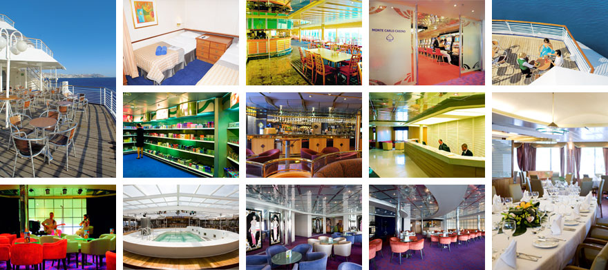 プール、レストラン、バー、カジノ、サウナ・ジム、ビューティーサロン、メディカルセンター、キッズクラブ ダイニングレストラン、カフェ、バ-、ラウンジ、Duty Free、I-NETコーナー等