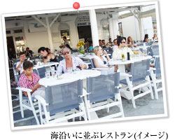 エーゲ海が目の前のカフェではサングラスをかけて優雅に。