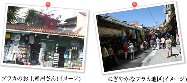 アテネの街の中心地の繁華街プラカ。賑やかなカフェやお店がたくさんあります。ゆっくりお酒を飲みながらランチを楽しみましょう。カフェでのんびりするのもよし、ショッピングを楽しむのもよし!メトロの駅があるので市内のどこへ行くにもアクセスが良い立地です。