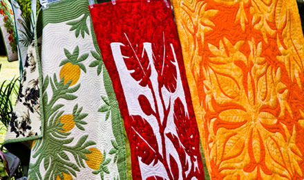 ハイビスカスやモンステラ、ホヌ(カメ)などハワイらしいモチーフのハワイアンキルト。小銭入れやポーチなどご自身のお気に入りを探してください。