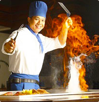 鉄板焼きの人気和食店「田中オブ東京」。シェフの見事なナイフ捌きやダイナミックな炎の演出など鉄板の上で繰り広げられるパフォーマンスが楽しみの一つです。