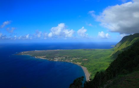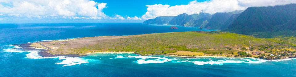 オアフ島から南東にわずか約40kmの距離にある、東西に細長い島。ハワイ主要6島の中で、最も観光地化されておらず、“ハワイの原風景”が残っているとても静かで素朴な島。観光では、かつてハンセン病患者を隔離されていた悲しい歴史のある、北岸のカラウパパ国立歴史公園や、マカダミアナッツ農園などをめぐります。