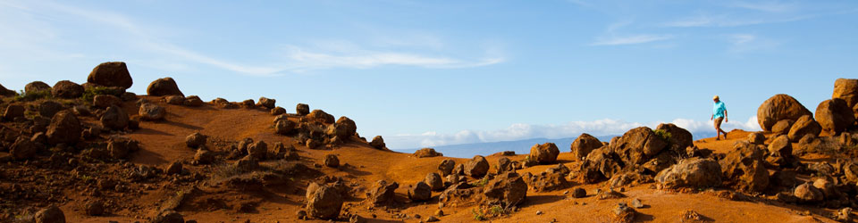 雄大な赤土が広がり、不思議な形に風化した巨岩や石の塔が織り成す荒涼とした風景は、神秘的で圧巻。観光客が少なく、いつも静寂に包まれたラナイ島随一の観光スポット。