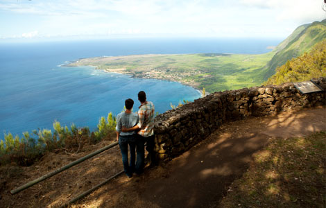 モロカイ島北端の断崖下に続く、広い海岸線を持ったカラウパパ半島を一望できる展望台。海の青さと、周りの山の緑のコントラストがうまくマッチしている絶景ポイント。カラウパパ半島は、かつてハンセン氏病患者の隔離施設として使用されていたが、現在は国定史跡公園に認定されている。
