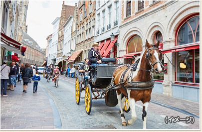 ブリュッセルからバスにて約2時間。まるで絵本の世界に迷い込んだかのように美しく、穏やかな景色が広がるブルージュは、13世紀の栄華の後、15世紀に北海への水路が塞がれ成長が止まってしまった結果、今なお中世の面影が色濃く残る町として国内外から多くの人が訪れる人気の町となりました。ゆったりとした時間が流れる運河沿い、チョコレートショップや可愛らしい建物が並ぶマルクト広場など、時間が許す限り散策を楽しみたい、クラブツーリズム一押しの町のひとつです。