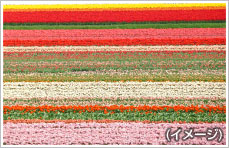 春のオランダの風物詩といえば、色とりどりの花々がまるで絨毯のように広がる風景。