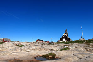 北極圏の街、イルリサットに立つ教会。シンプルでどこか自然に溶け込むような建物。