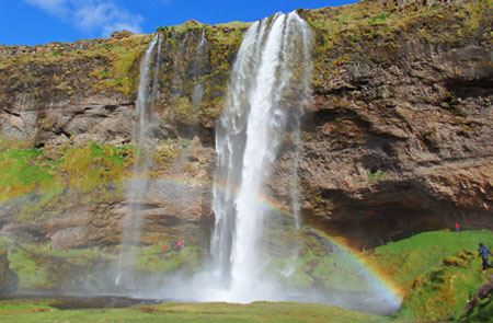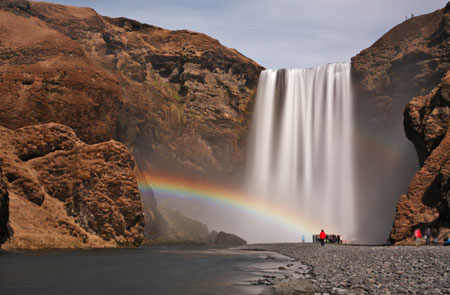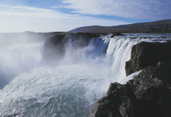 アイスランド語で「落ちる滝」を意味します。幅100メートル、落差44メートルで、数あるアイスランドの滝の中でも圧倒的な水量を誇ります。