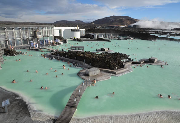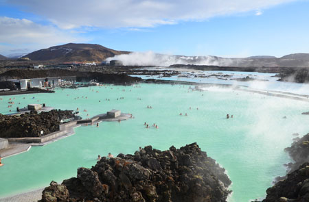 ブルーラグーンの白い煙は湯気ではなく、地熱発電所の煙。この地熱発電所の熱で温められたお湯で、ほっとくつろぐことができます。ミネラルを多く含む真っ白な石灰石の泥でパックをしたり、カフェで休んだり、旅の疲れをゆっくりと癒してください。
