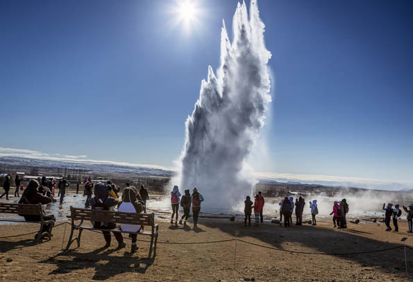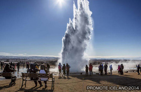 大迫力のストロックル間欠泉は、5~10分に一度の頻度で噴出し、高さは最高20メートルまで達します。出てくるお湯は地球が生きているということをまさに感じることができるおすすめのスポットです。30分滞在すれば2~3度の噴出を見ることができるかもしれません。
